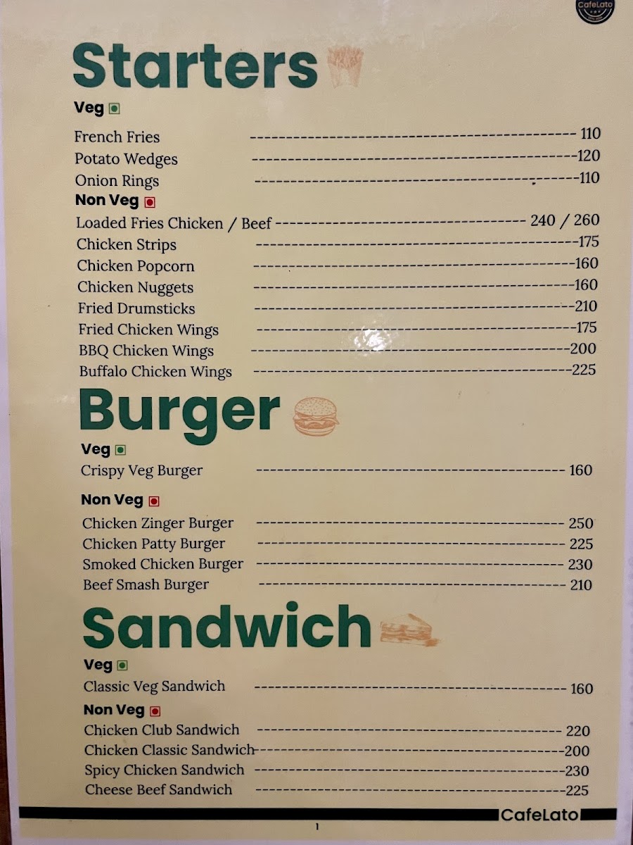 Welcome to Cafelato, an inviting café nestled in Chakkamadathil Arcade, Kandassankadavu, Kerala. This culinary haven is a fusion of flavors, showcasing a diverse menu designed to satisfy every palate.